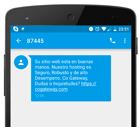 El servicio de mensaje de texto corto (SMS), permite enviar desde nuestra plataforma mensajes SMS hacia dispositivos móviles activos en las redes celulares a nivel nacional e internacional por código corto. Todos los dispositivos móviles están habilitado para recibir mensajes SMS, los cuales se transmiten por la red celular y pueden contener hasta 160 caracteres.